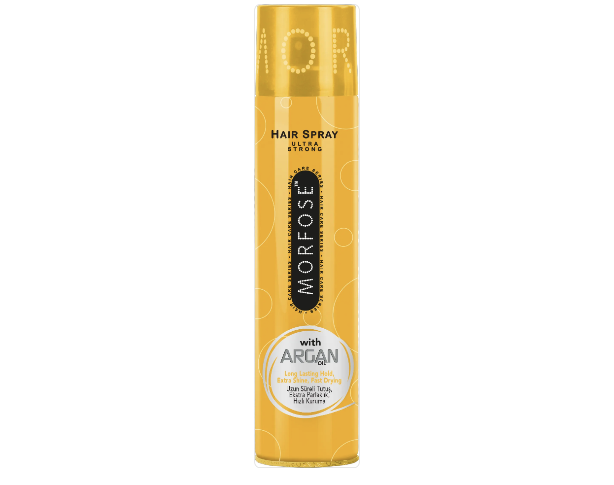 Morfose Argan Hair Spray geeft je haren een glanzende finish en stevige hold zonder je lokken te verzwaren en uit te drogen. Door de toevoeging van verzorgende arganolie wordt je haar beschermd tegen uitdroging, wordt pluis tegengegaan en krijgt je haar de voeding die het nodig heeft. Arganolie is van nature rijk aan vitamine E en essentiële vetzuren, waardoor Hair Spray Argan de stevigheid van een haarlak combineert met optimale verzorging en bescherming. De Ultra Strong hold maakt dat je de hele dag geen omkijken naar je haar hebt. Spray van 15-20 cm op droog gestyled haar. Geschikt voor alle haartypes, in het bijzonder droog en beschadigd haar.