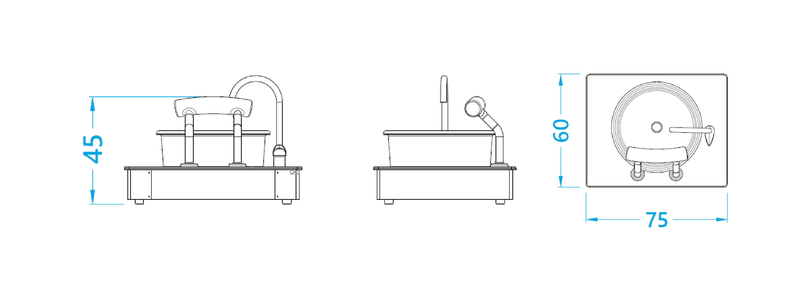 Met 75 × 60 × 45 cm biedt het een royale behandelruimte, maar blijft het compact genoeg om flexibel in te zetten – zelfs in kleinere salonomgevingen.