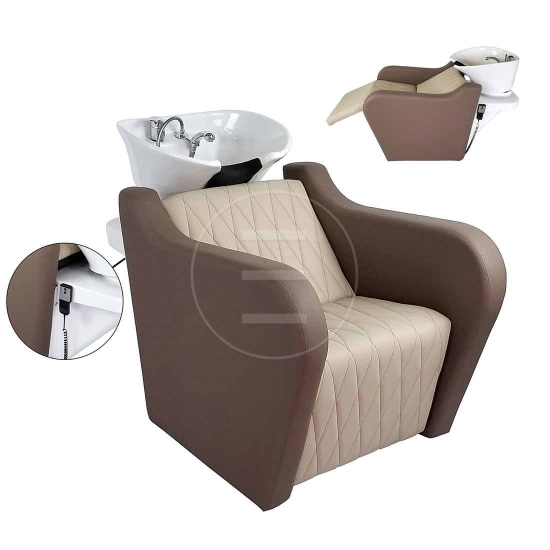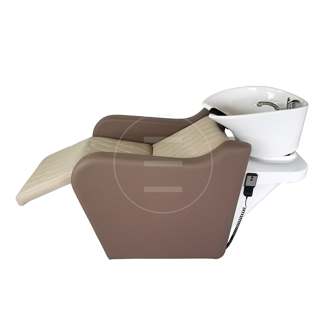 De elektrische bediening van de Wasunit Maya Wash Electric maakt het mogelijk om de rugleuning en/of beensteun eenvoudig te verstellen, zodat de klant altijd in een ontspannen positie ligt tijdens de behandeling. De keramische kantelbare wasbak zorgt voor optimale hygiëne en gebruiksgemak.